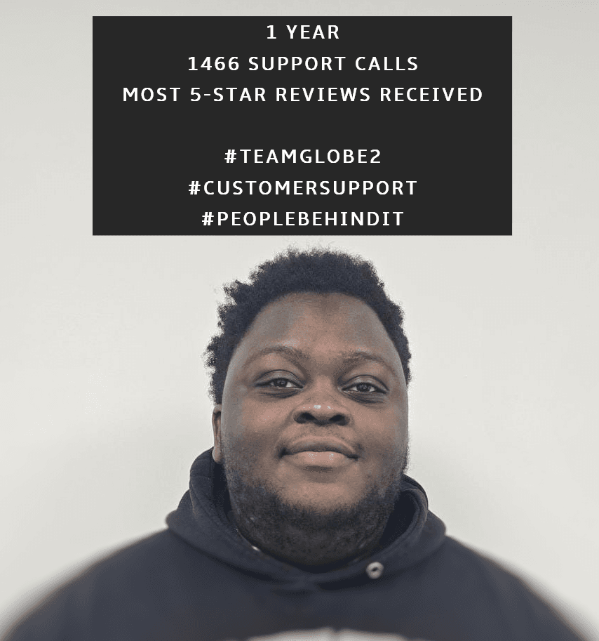 This week marks Simba’s first year at Globe2, and he has definitely made his mark. In just 12 months, Simba has handled 1,466 support calls